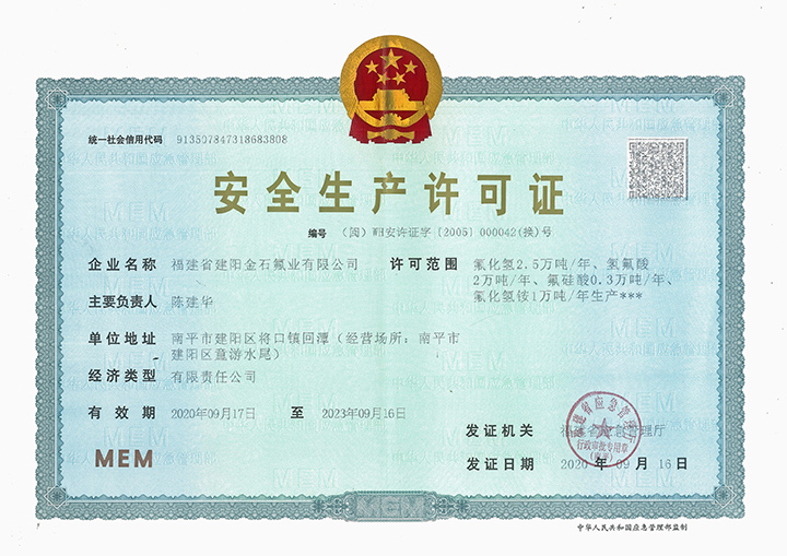 福建省建陽金石氟業(yè)有限公司主要從事氟化工產品無水氟化氫、無機氟鹽,以及電解氟等系列產品的生產銷售,是集螢石開采、氟化工深加工為一體的綜合企業(yè)。主要產品、規(guī)模:年產制酸級螢石粉5萬噸、無水氟化氫4萬噸、試劑級氫氟酸2萬噸、氟化氫銨(氟化銨)1萬噸、氟碳表面活性劑30噸。